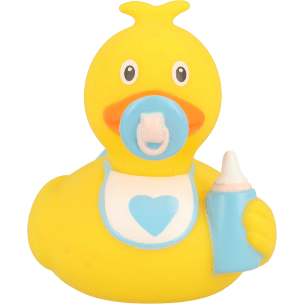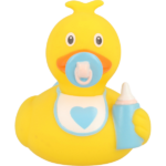 La paperella bebè maschietto è una dolcissima rubber duck . Con il suo faccino carino, il ciuccio azzurro nel becco e il biberon in un’ala. Un regalo molto carino per festeggiare un nuovo bimbo o come originale bomboniera per il battesimo. Se la cicogna ha portato una femminuccia guarda la Paperella Bebè Femmina.