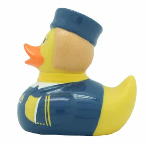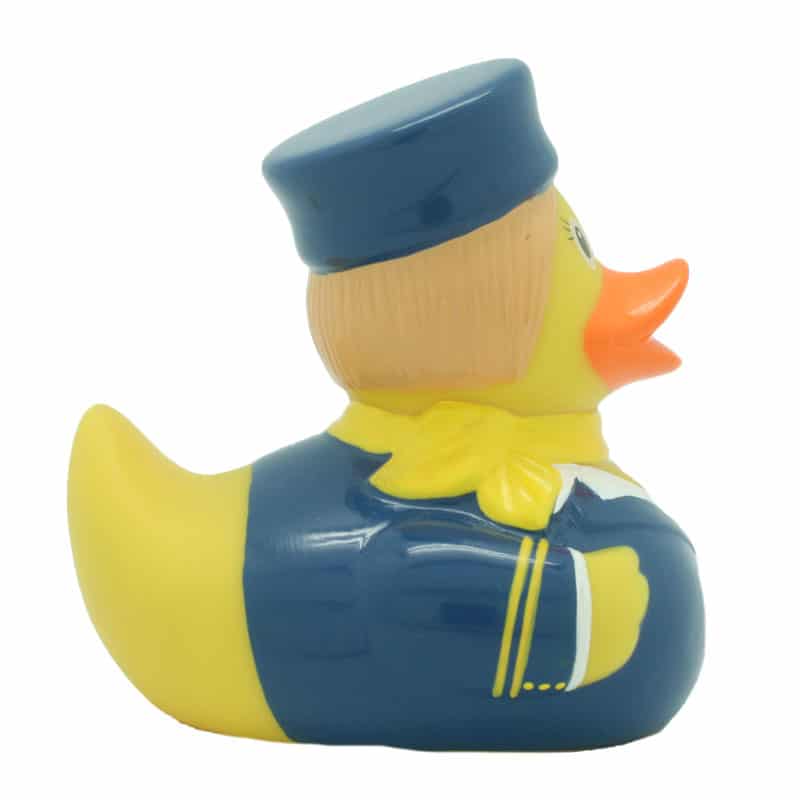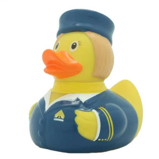 Un’elegante assistente di volo, pronta ad accompagnarvi in tutto il mondo. La rubber duck perfetta da regalare a tutte le amiche che lavorano su un aereo. Insieme alla papera da bagno hostess abbiamo anche la paperella pilota d’aereo.