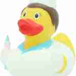 Paperella di gomma infermiera una divertente rubber duck pronta a ad affiancare le paperelle da bagno Dottore e Dottoressa. Un regalo molto divertente da fare un’amica infermiera.