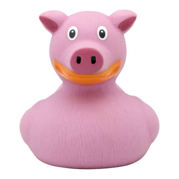 Papera da bagno maialino una simpatica rubber duck travestita da maiale. Rosa paffutella con il suo becco arancione una papera da aggiungere alla collezione di maialini o alla collezione di papere.