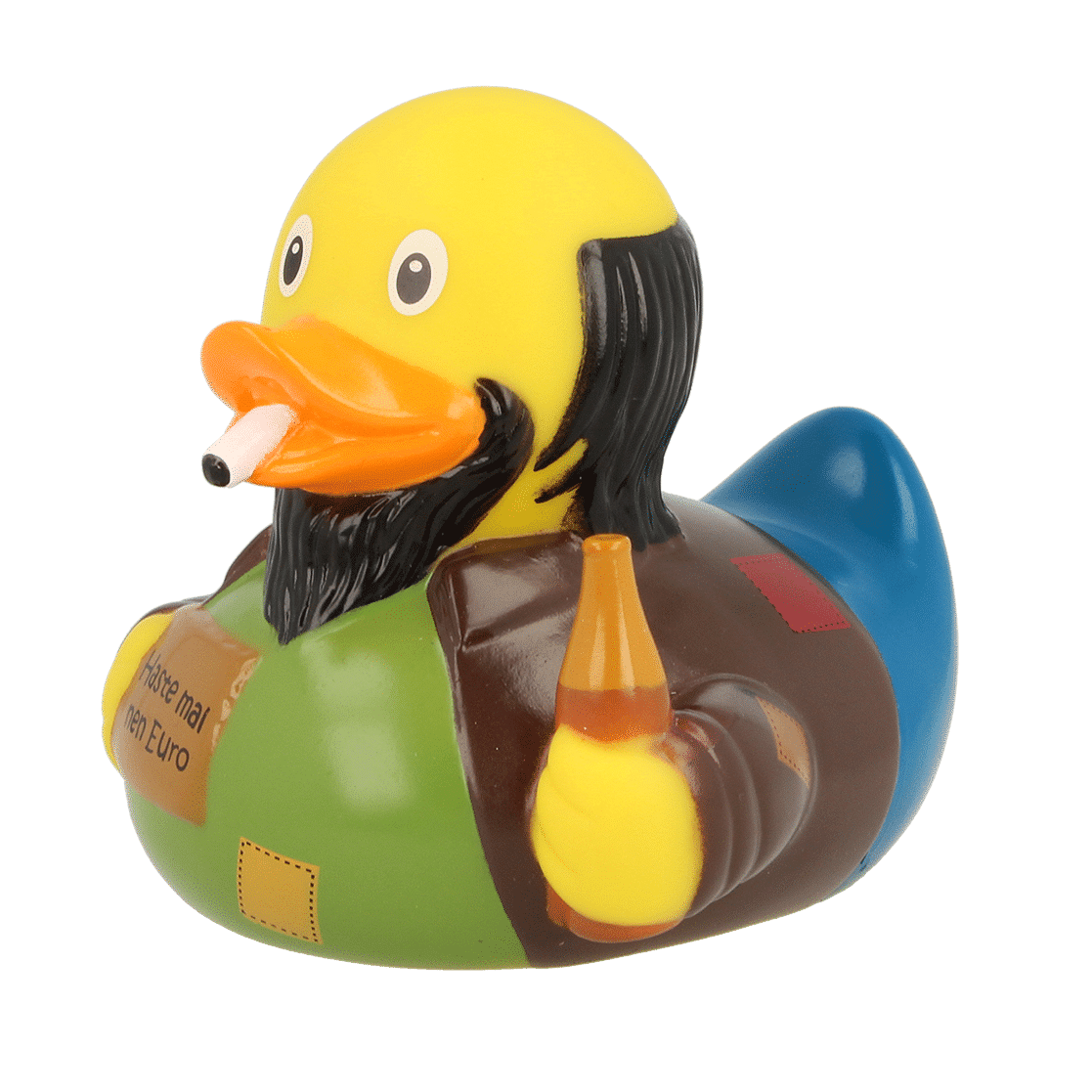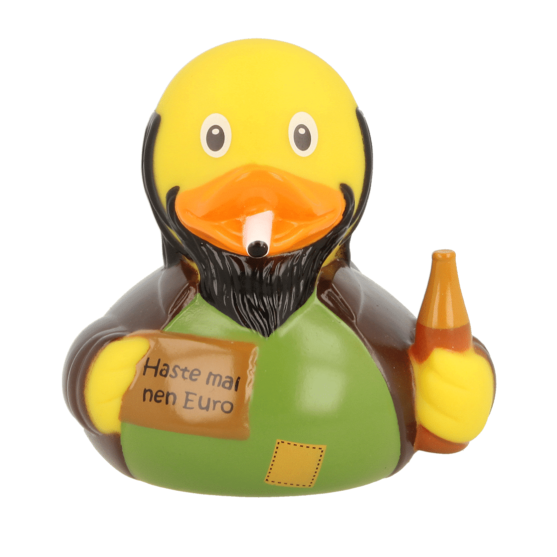 Paperella di gomma mendicante una rubber duck da collezione con un design divertente da collezionare insieme alla papera da bagno ladro