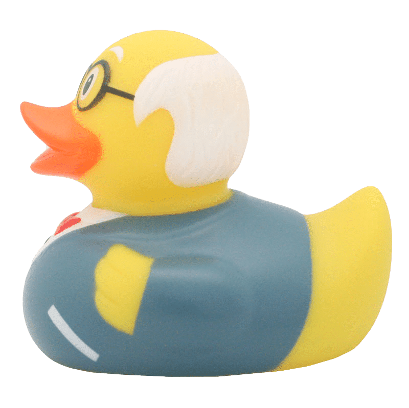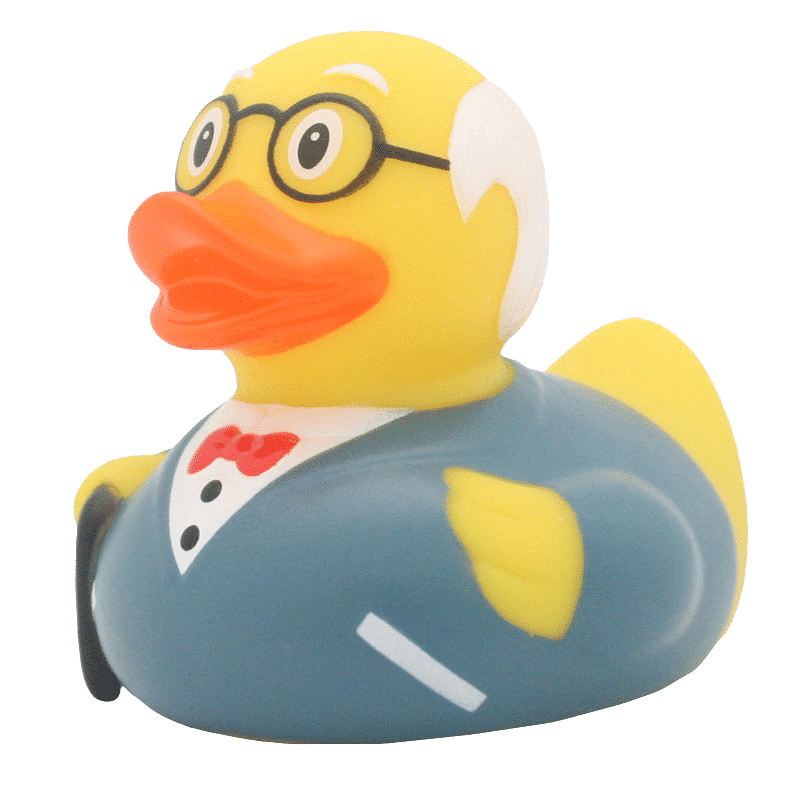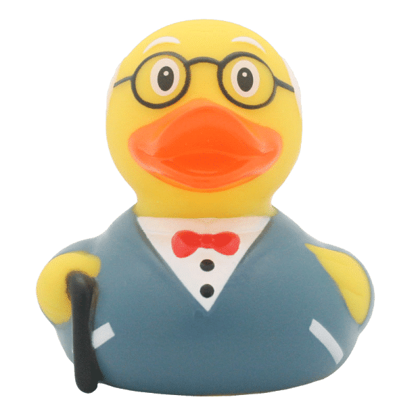 Paperella di gomma Nonno, una simpatica rubber duck dalle sembianze di un dolce nonno, con occhiali e bastone naturalmente in coppia con la dolce paperella nonna.
