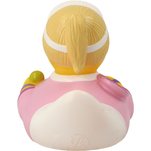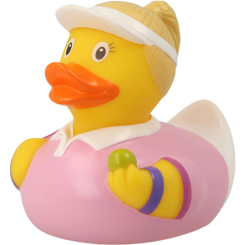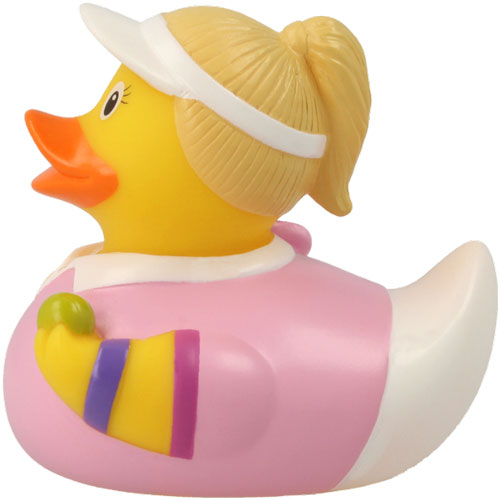 Vestita di rosa con la sua racchetta la nostra Tennis Woman Rubber Duck è il talismano portafortuna di ogni giocatrice di Tennis. Portala con te alle partite e vedrai che la simpatia della tua amica papera neutralizzerà l’avversario. La Tennis Woman Rubber Duck gioca spesso insieme Tennis Man Rubber Duck.